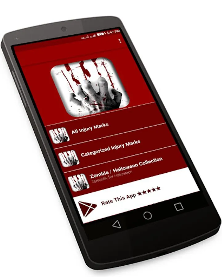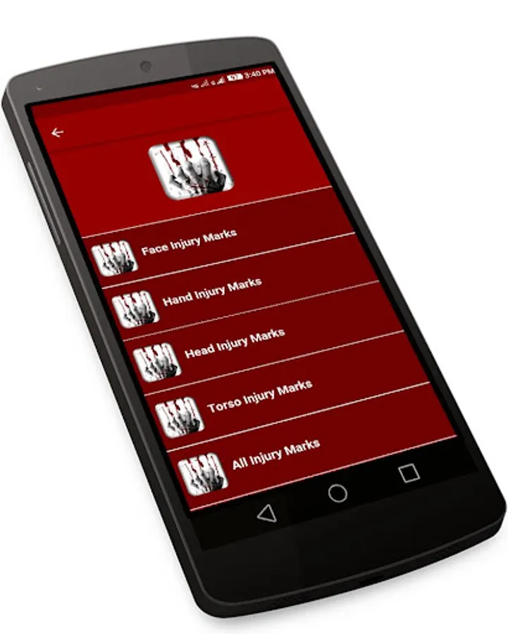 This injury photo editor app can prank your friends and family, by showing them your injury. This injury app is great for Halloween party, Office/school leaves excuses etc. Create some wrestling injury with this injury photo editor. If you want to show self harm to anyone just use this injured photo editor app, don't hurt yourself and don't feel the pain. Turn your normal image into more scary and horror with this scary photo editor and create your scary wallpapers. Show some vampire bite marks with this vampire photo editor booth. Best app to zombie yourself or zombie photo maker on you. Get some Halloween theme party makeup ideas with this Halloween photo frames editor and get ready for any Halloween games for girls party.