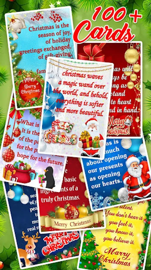The app has a huge collection of HD Christmas greeting card, Xmas cards, Christmas wishing cards, Xmas wallpapers, Christmas images and Merry Christmas photos you can choose from. Send wishes of Christmas is now too easy with this greeting cards app.