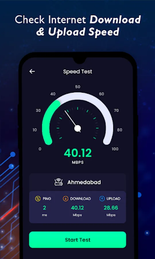 App continuously display your current connected network Download & Upload speed in dashboard.