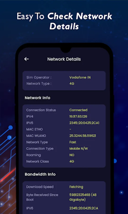 👉 Bandwidth Info like download speed, byte received since boot, byte transmitted since boot