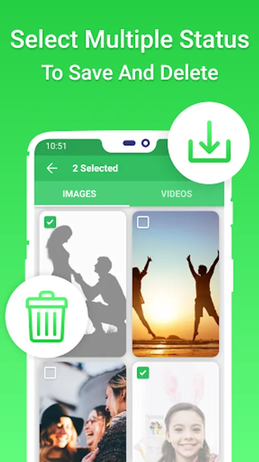 5. Long press on any Image or Video so Delete & Save enabled in header. From that you can Save or Delete selected Images or Videos.