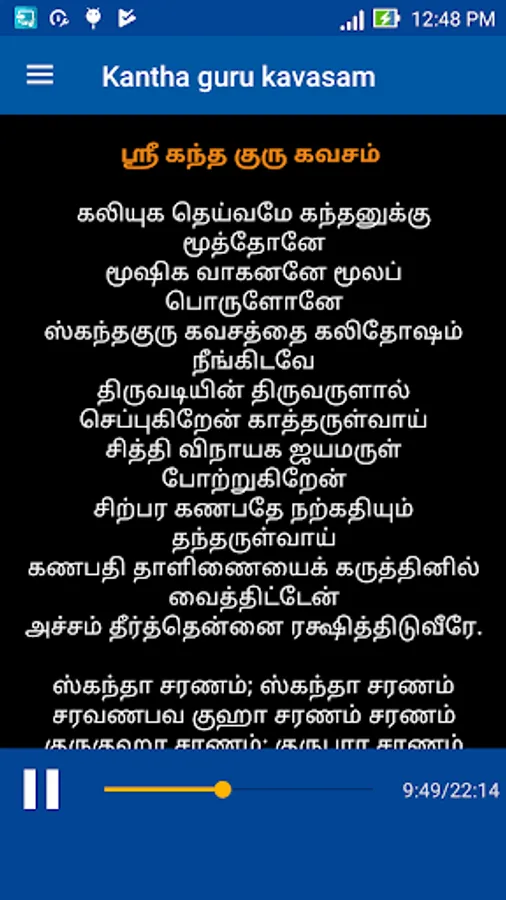 Now Devotees can read and hear Kavasam while in Commute, at the office, at home. With the availability of audio for Kandha Guru Kavasam, you can listen to the kavasam and read through the text at the same time.