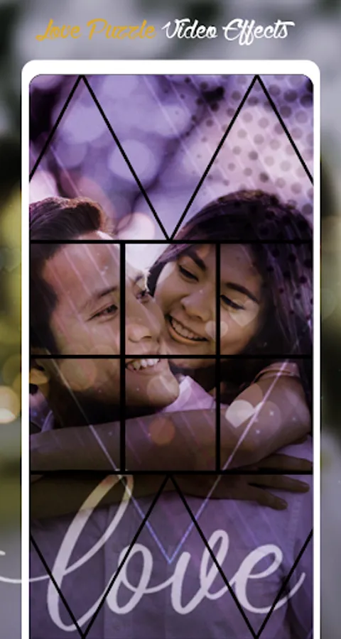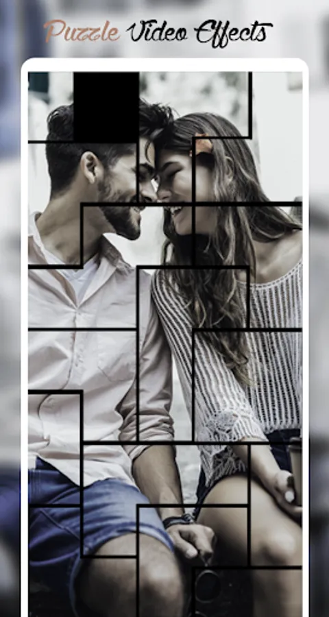 The amazing puzzle video status maker that allows you to make your photo into video with amazing puzzle tiles,heart effects and love romantic music. Create your lovely couple photo into video using romantic puzzle effects tile love romantic video , party video, cool video, anniversary video, birthday video, sad video , i miss you video status, valentine videos.