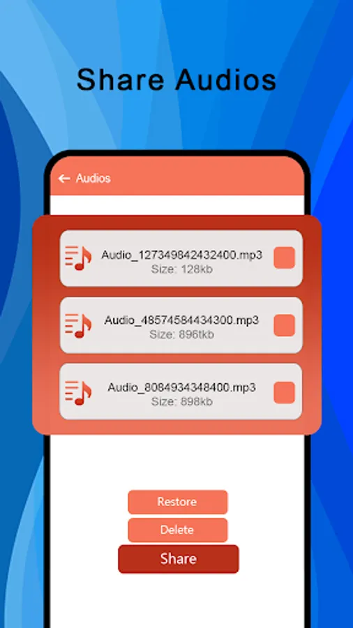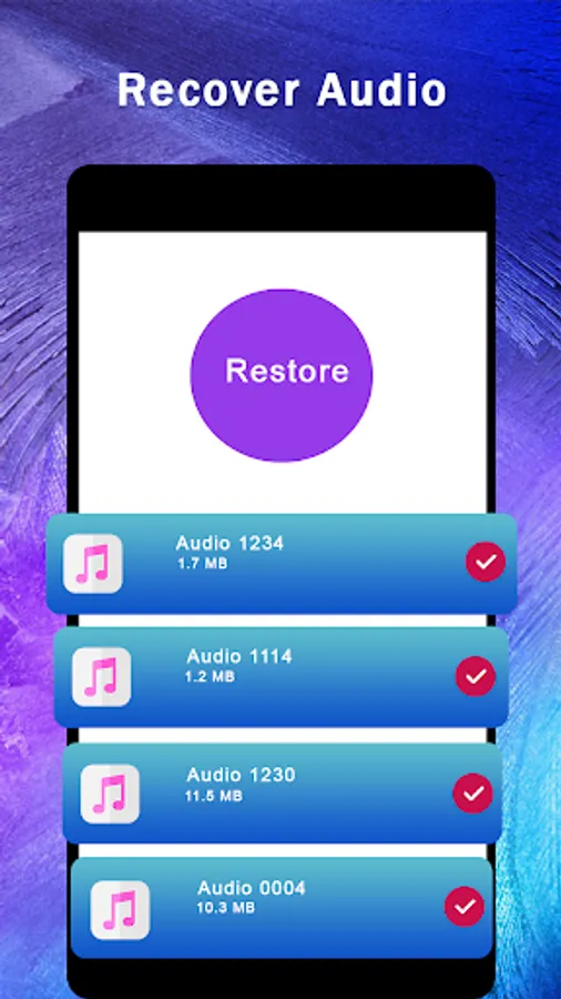 This Deleted Audio Recovery: Restore Deleted Audios All application helps you in making backups for your all audios. To make backup for your audios, you must have to press scan button, without scanning you will not able to restore deleted audios. When you download this Super Audio Recovery-Restore Audio files app you will not lose you audios data anymore. This Audio Recovery:Audio Files Recovery will recover deleted audio files android and recover lost files audio. recover audio files process in now very easy that you just press on restore button after scanning and getback your audio files within seconds.