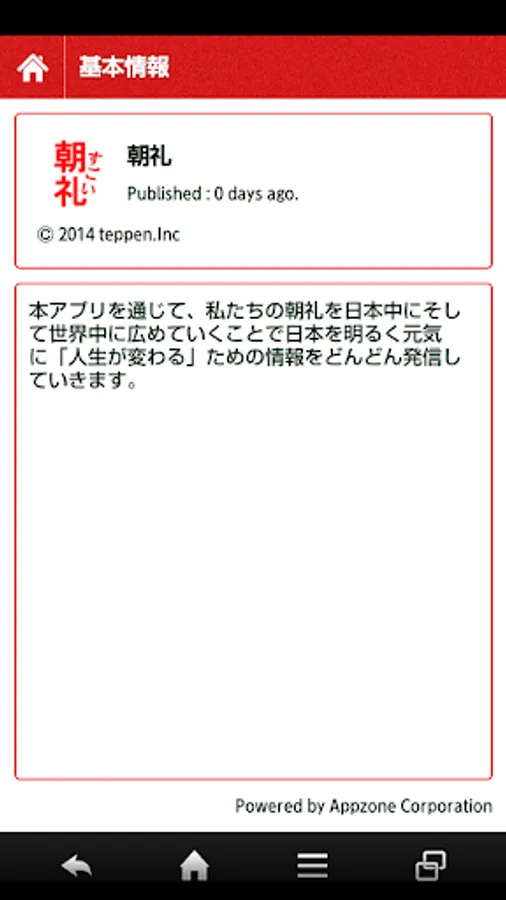 本アプリを通じて、私たちの朝礼を日本中にそして世界中に広めていくことで日本を明るく元気に「人生が変わる」ための情報をどんどん発信していきます。