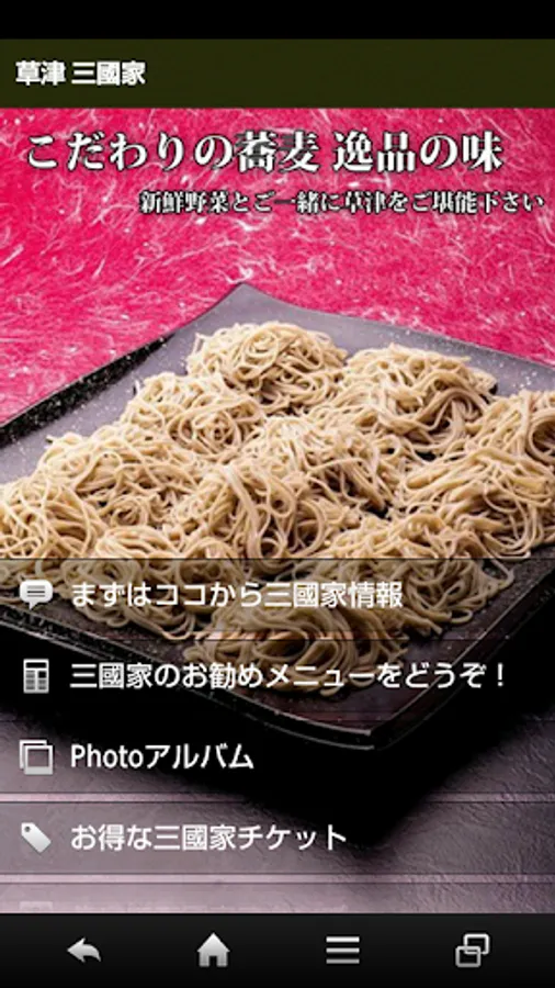 草津温泉近く老舗のおそば屋、三國家の公式アプリです。