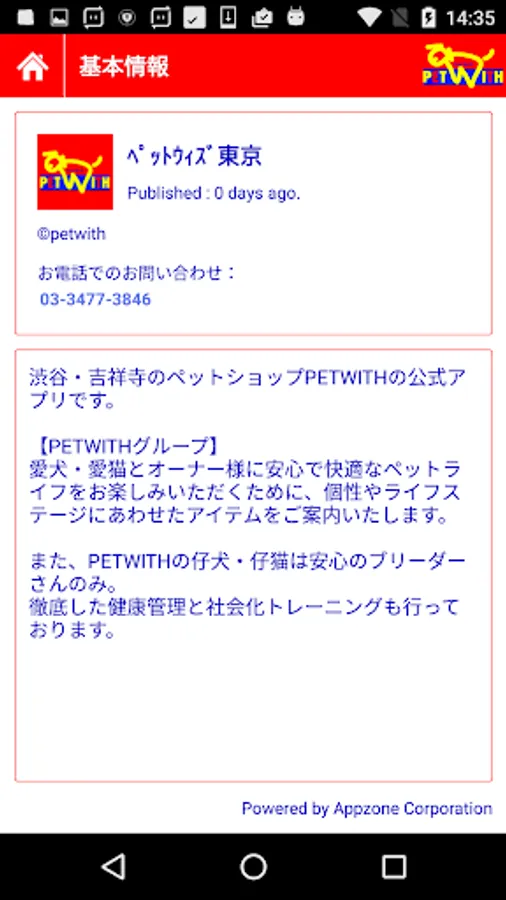 It is the official app of Shibuya, Kichijoji Station near the pet shop "PETWITH".