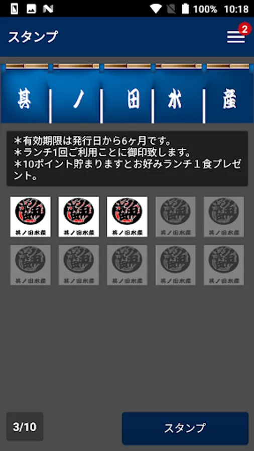 スタンプの画面からカメラを起動し、スタッフの指示するQRを読み込むことでスタンプがGETできます。お店でもらえるスタンプを集めて、お得な特典が受け取れます。