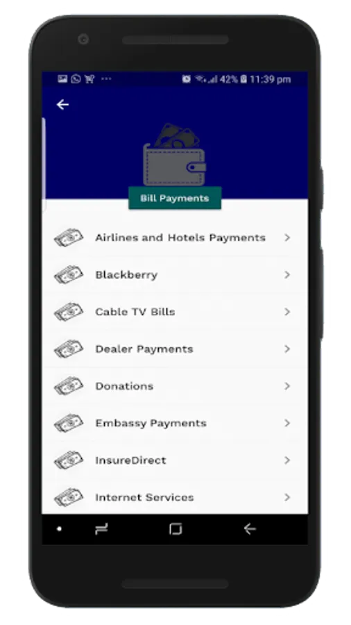 - Bills Payment e.g. DSTv, GoTv, PHCN