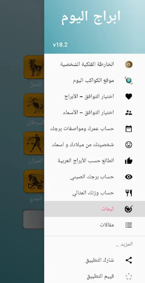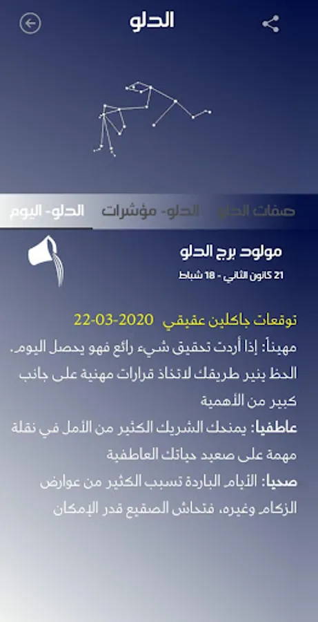 It allows you to browse the annual predictions for your horoscope according to Najla Qabbani, Maguy Farah, Carmen Shammas and Jacqueline Akiki.