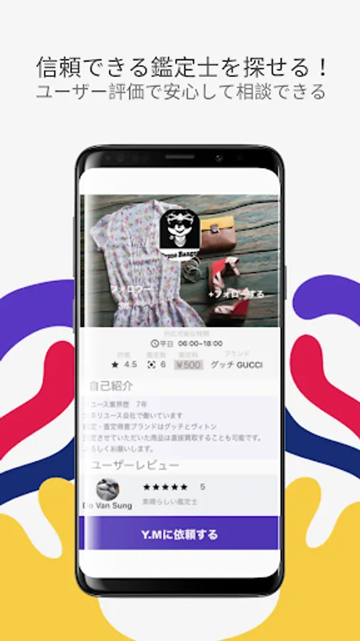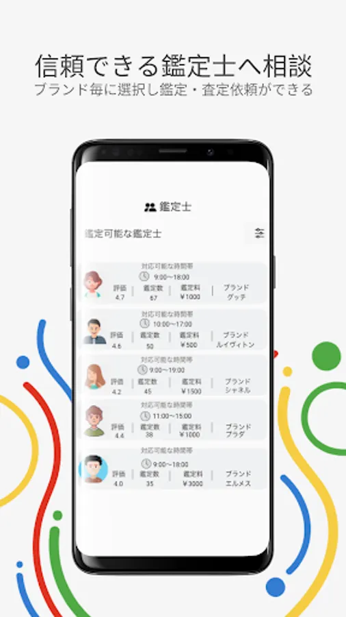 ハ イ ブ リ ッ ド Hybrid service that uses AI technology and matching with a person with authenticity (authentic fake judgment) skills of an appraiser so that they can be listed on the Flea Market app with confidence.