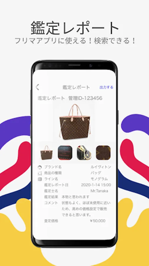 ・ Outputs the authenticity report and can be used as one of the images of the flea market app.