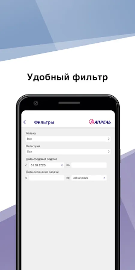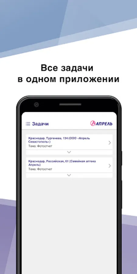 - Control over the execution of tasks in the mobile application (photo, audio, execution time)