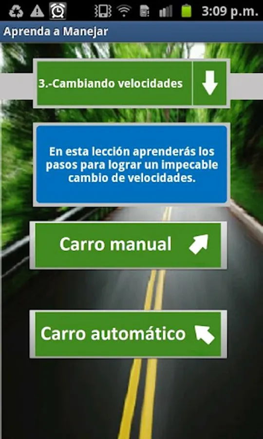 Learn to Manage is an application designed to guide and support those who are starting their adventure behind the wheel. A series of videos that explain the first steps to start managing your car (automatic and manual) are provided. It has integrated traffic regulations updated Mexico City for consultation, in addition to ability to set reminders on your car that does not run and check the dates. As bonus content includes a guide to caring for your car.