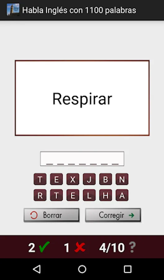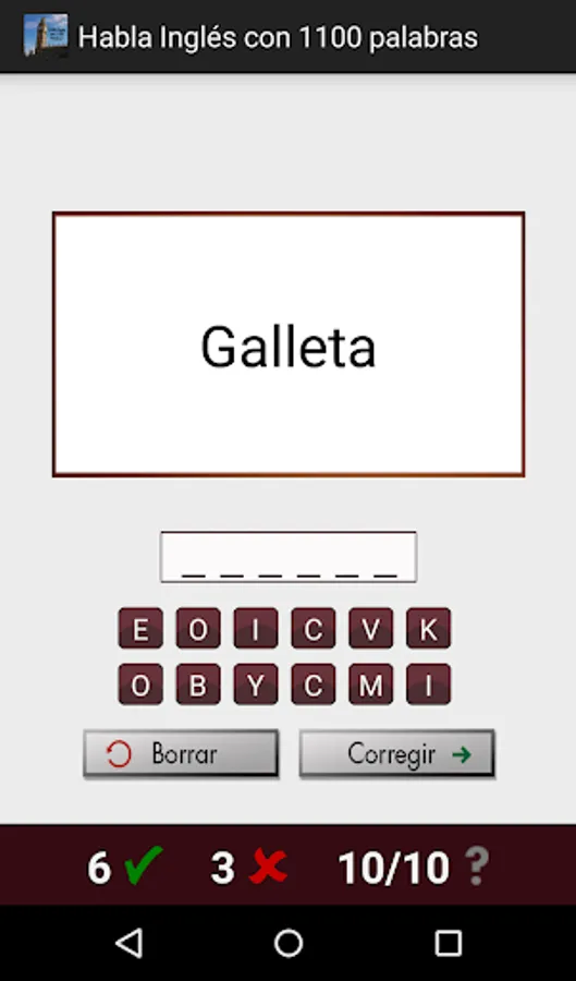 Within each day you can see a list of all words in Spanish and English, and you can test your new knowledge with all three types of tests available.