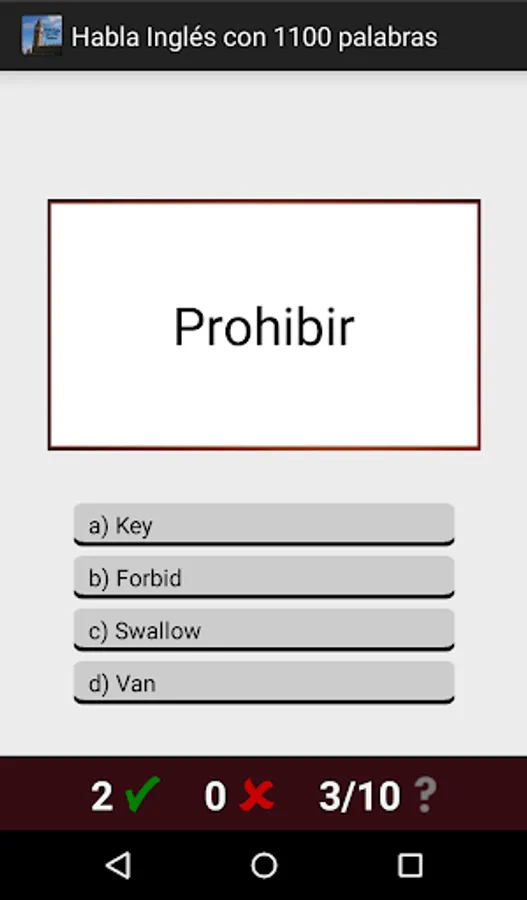 With this application you can learn the most common words of English. You quickly increase your vocabulary of English words which will help you to speak English more fluently.