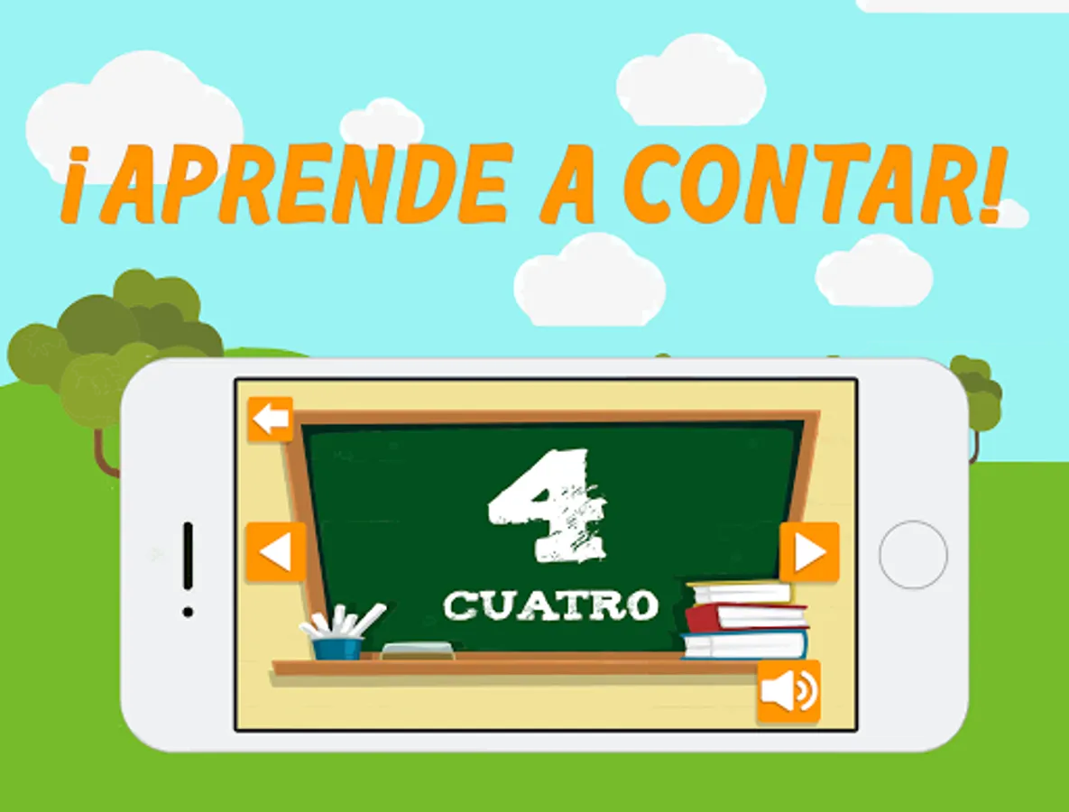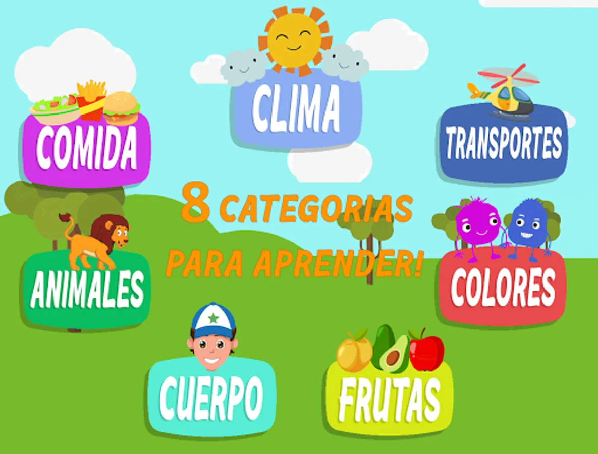 The functions in this application will teach children to speak and understand Spanish words from the following categories: numbers, colors, food, fruit, body parts, transportation and weather.