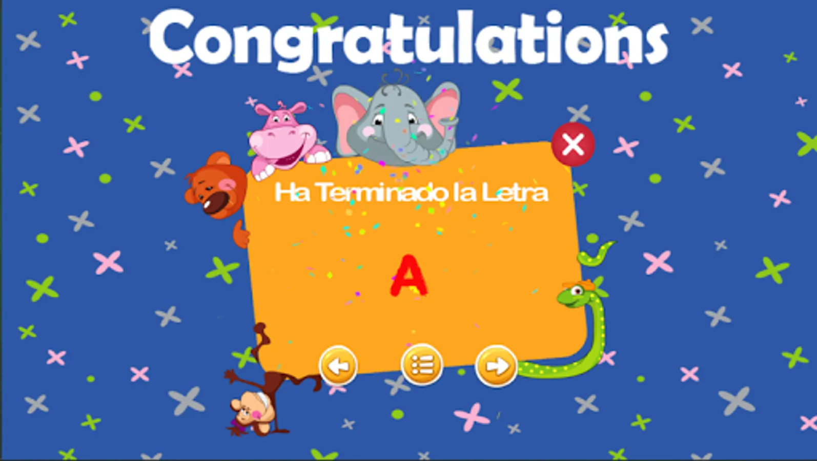 Learn to write and read in a fun and entertaining way with our letter game! This interactive game guides you through the process of learning to trace and write each letter of the alphabet in an intuitive and easy-to-understand way. The application has animal and object sounds to make learning more playful and attractive for children. In addition, this game is perfect as a school support for teachers looking for a fun and effective way to teach literacy.