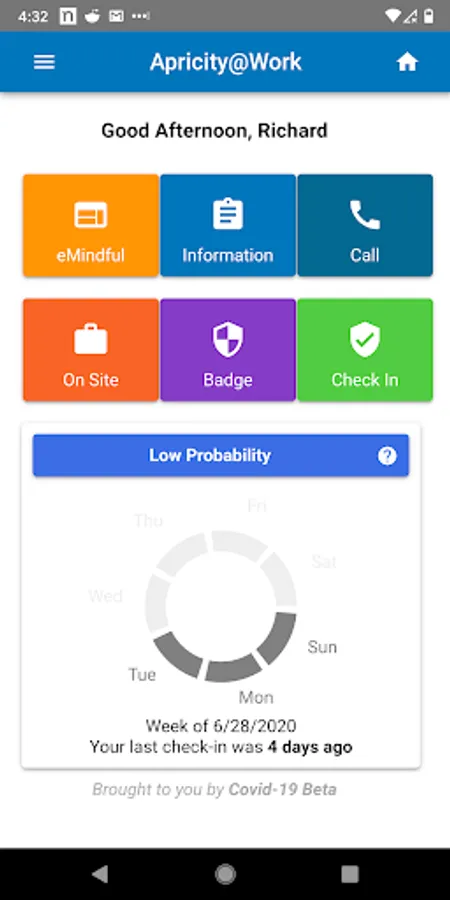 Apricity@Work™ is a employee-facing app for mobile phones. It has a Smart UI/UX to capture health data (PGHD) from employees in real-world settings.