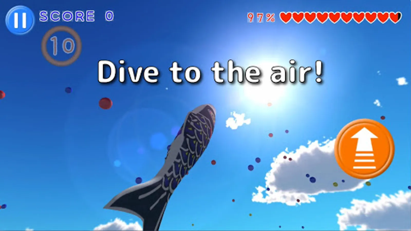 Swipe the screen by up, down, left and right for controlling the carp. (The initial setting is that the carp goes up when you swipe down, but you can reverse it by setting in pause)