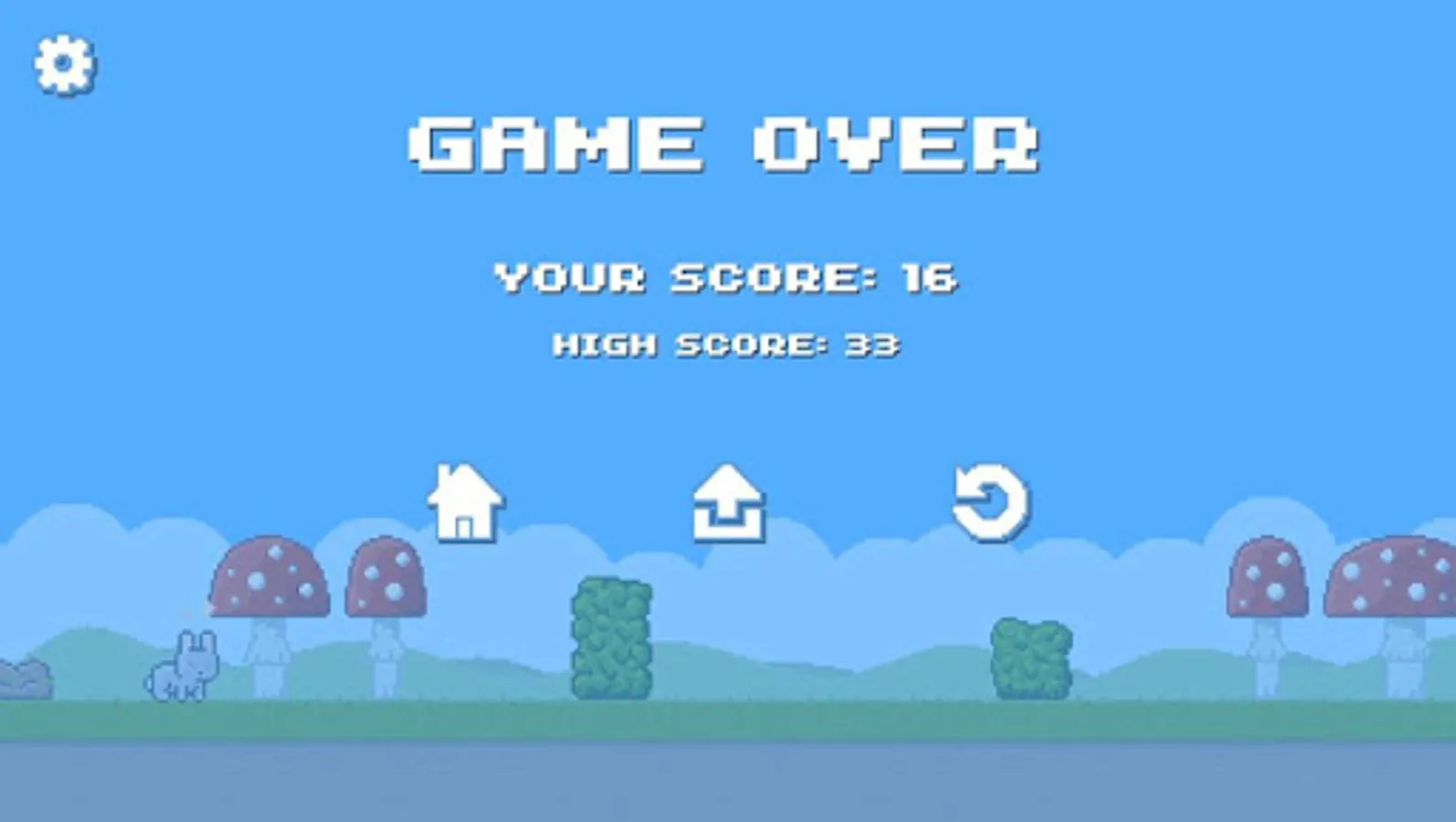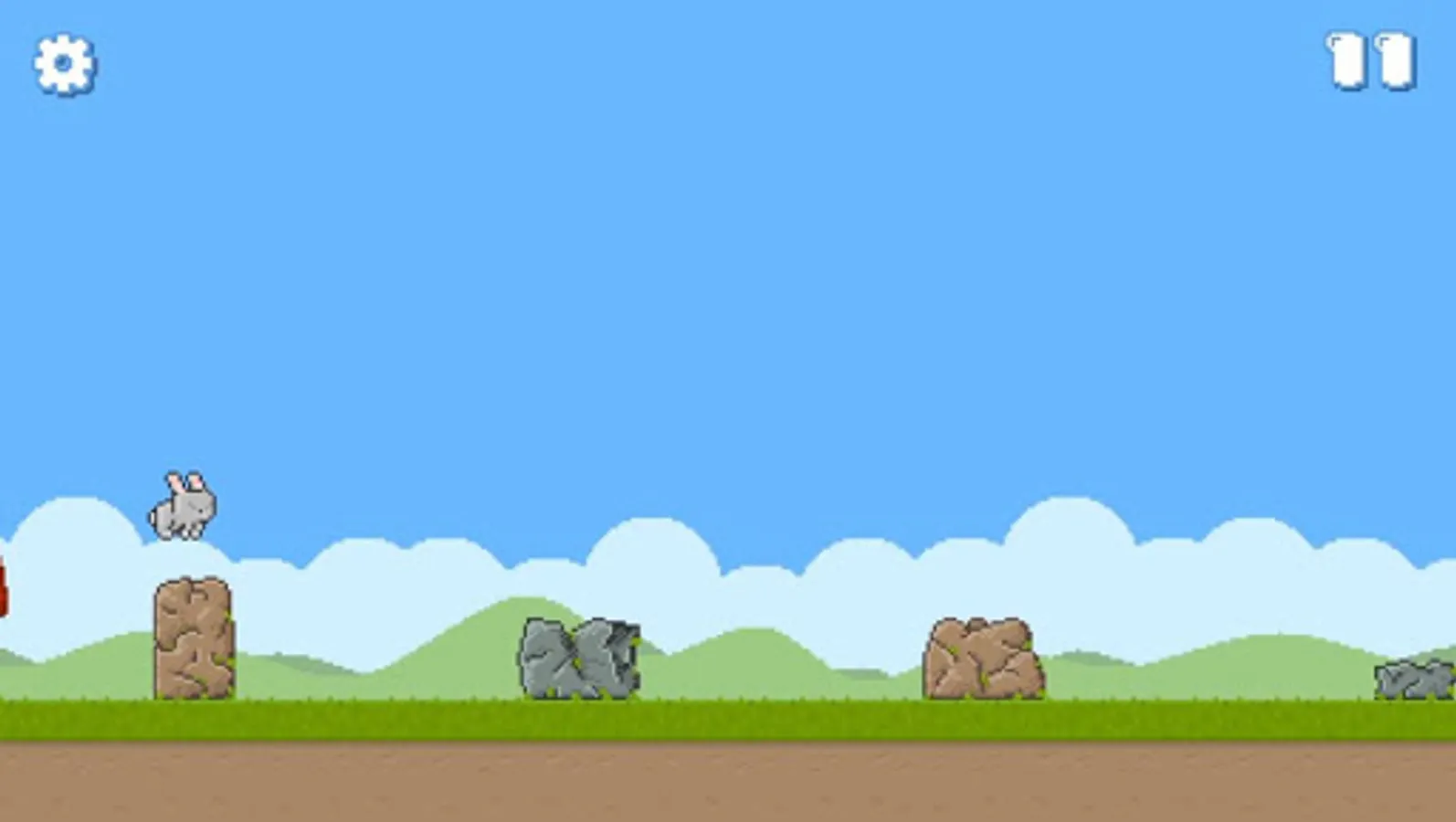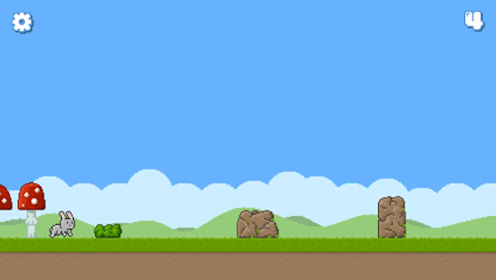 Nimble Feet is an old-school style arcade game. The gameplay is simple, just run with the bunny under the huge mushrooms (beware not to hit your head) and jump over obstacles like bushes, rocks and mounds.