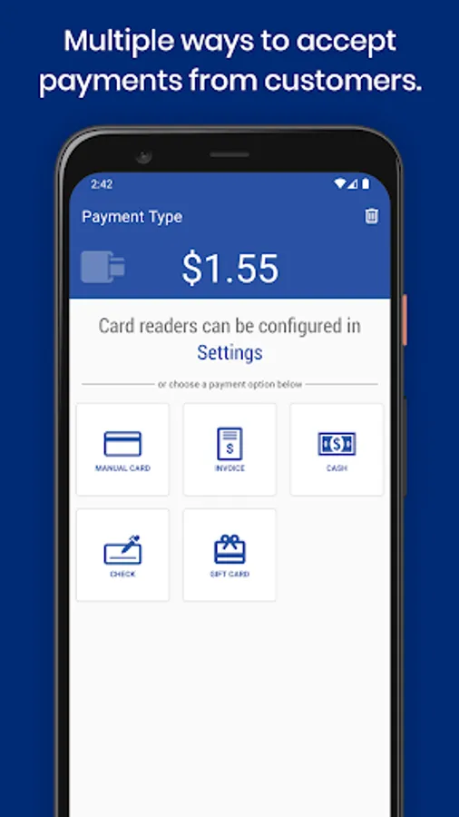 • Full Card Acceptance – Process cards via an intuitive user interface