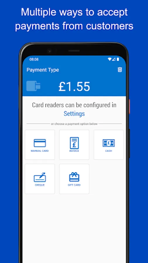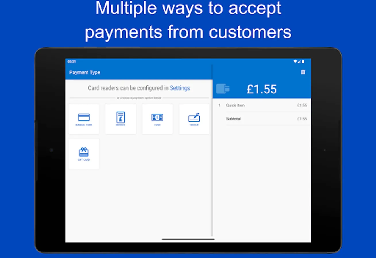 • Process chip and PIN, and Contactless (including Apple Pay and Google Pay) payments - Via an intuitive user interface and certified mobile card reader*