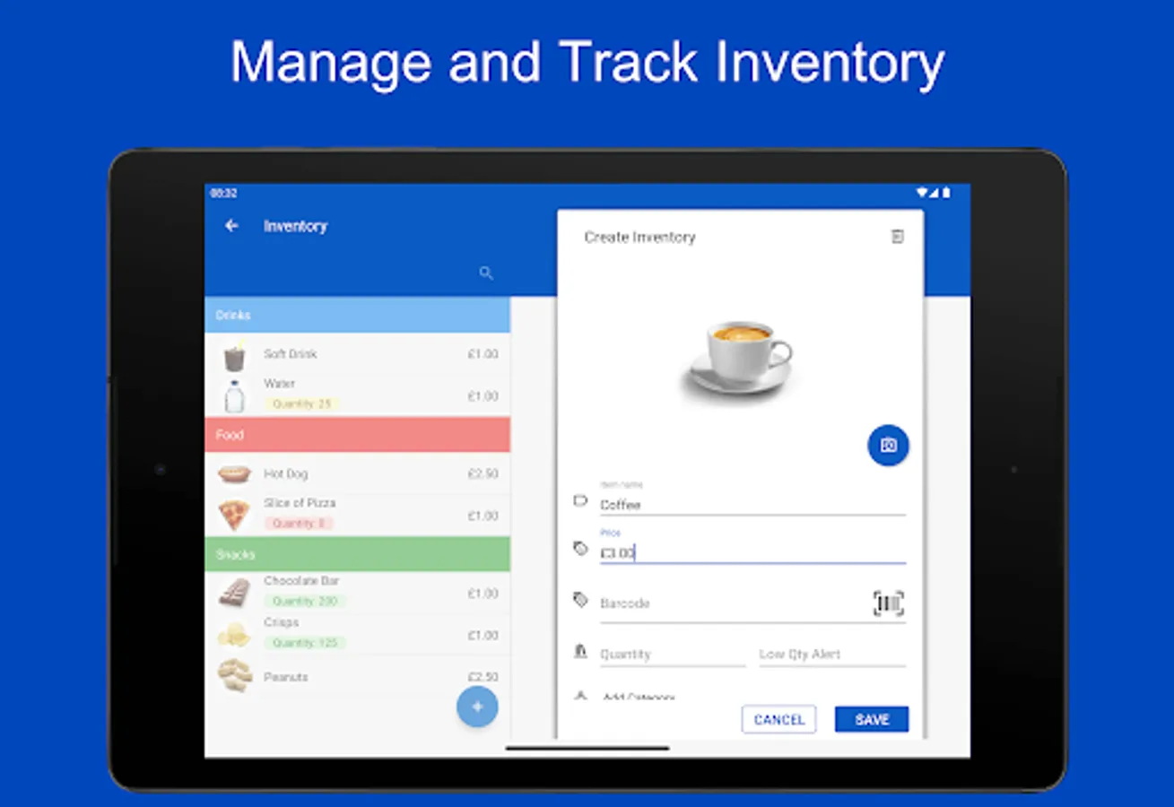 • Cloud-based Inventory and Reports - Create inventory lists and manage sales reports from any device