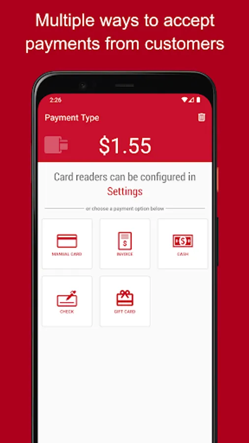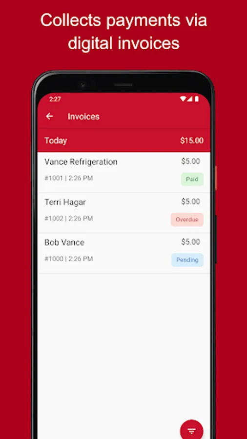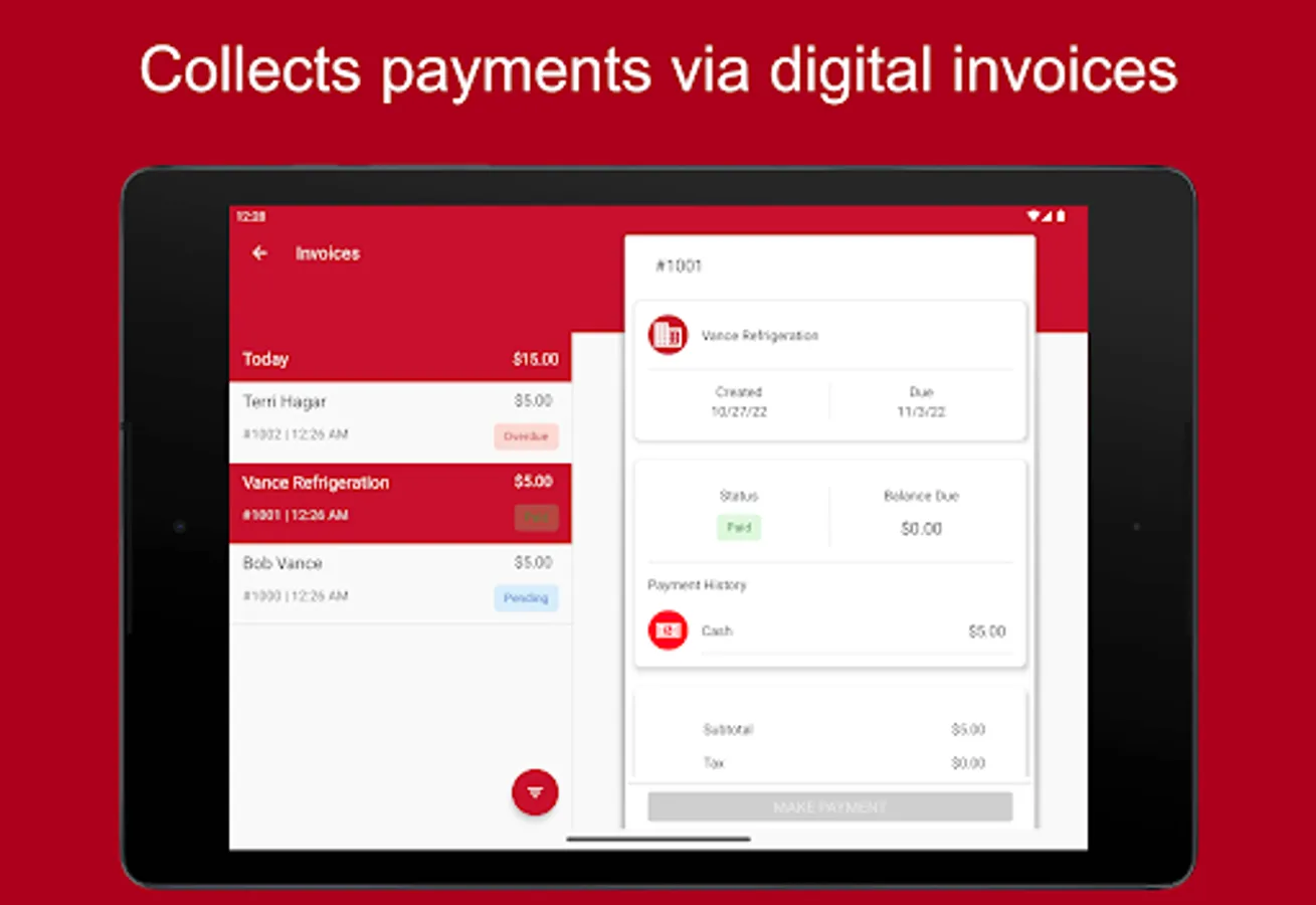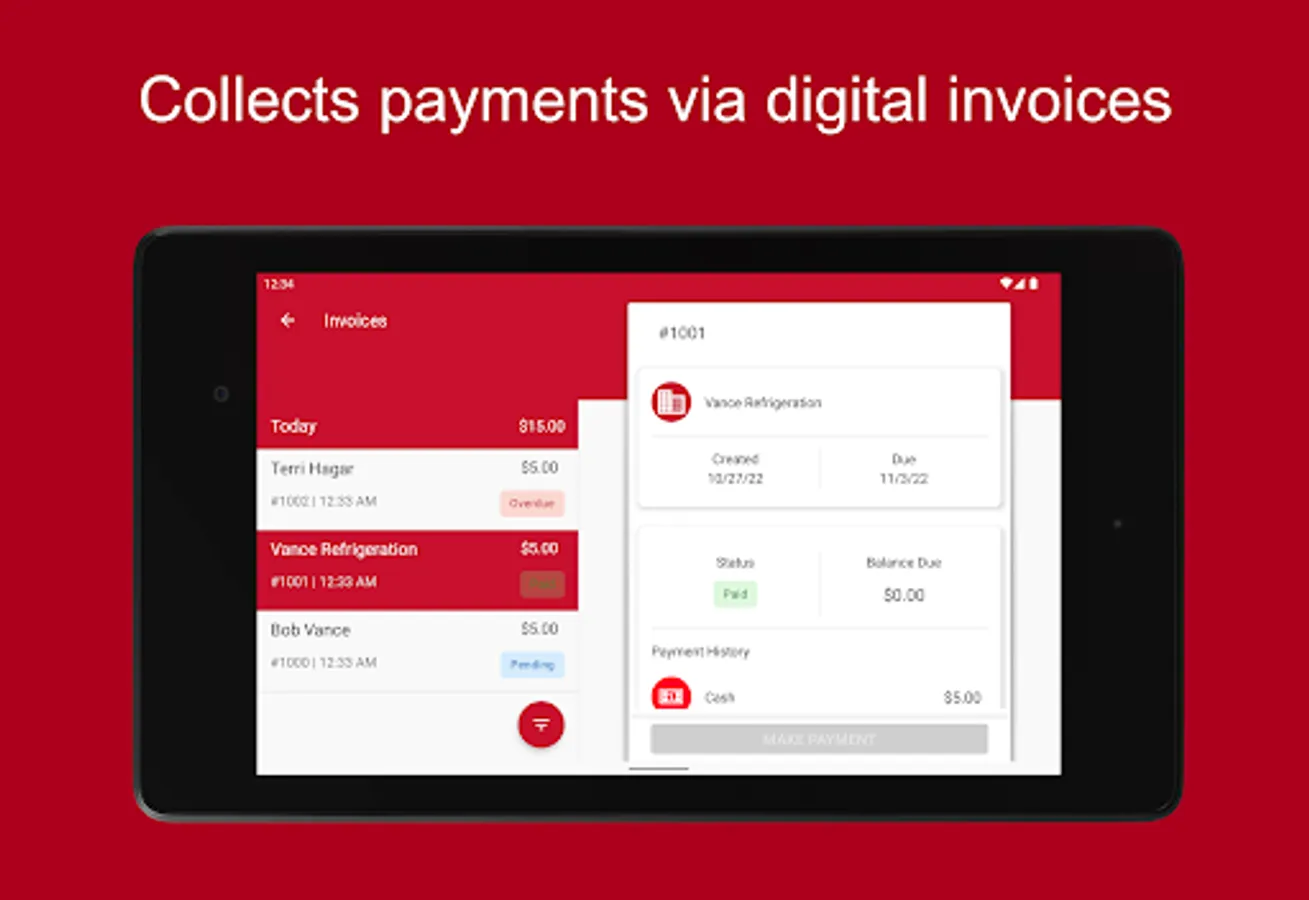 • Digital Invoices - Deliver invoices via SMS or email to customers who can pay from any mobile device or desktop computer anywhere