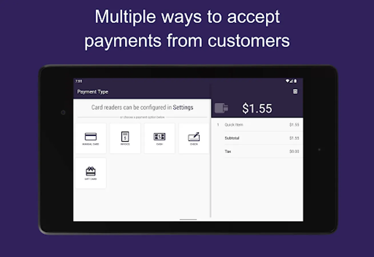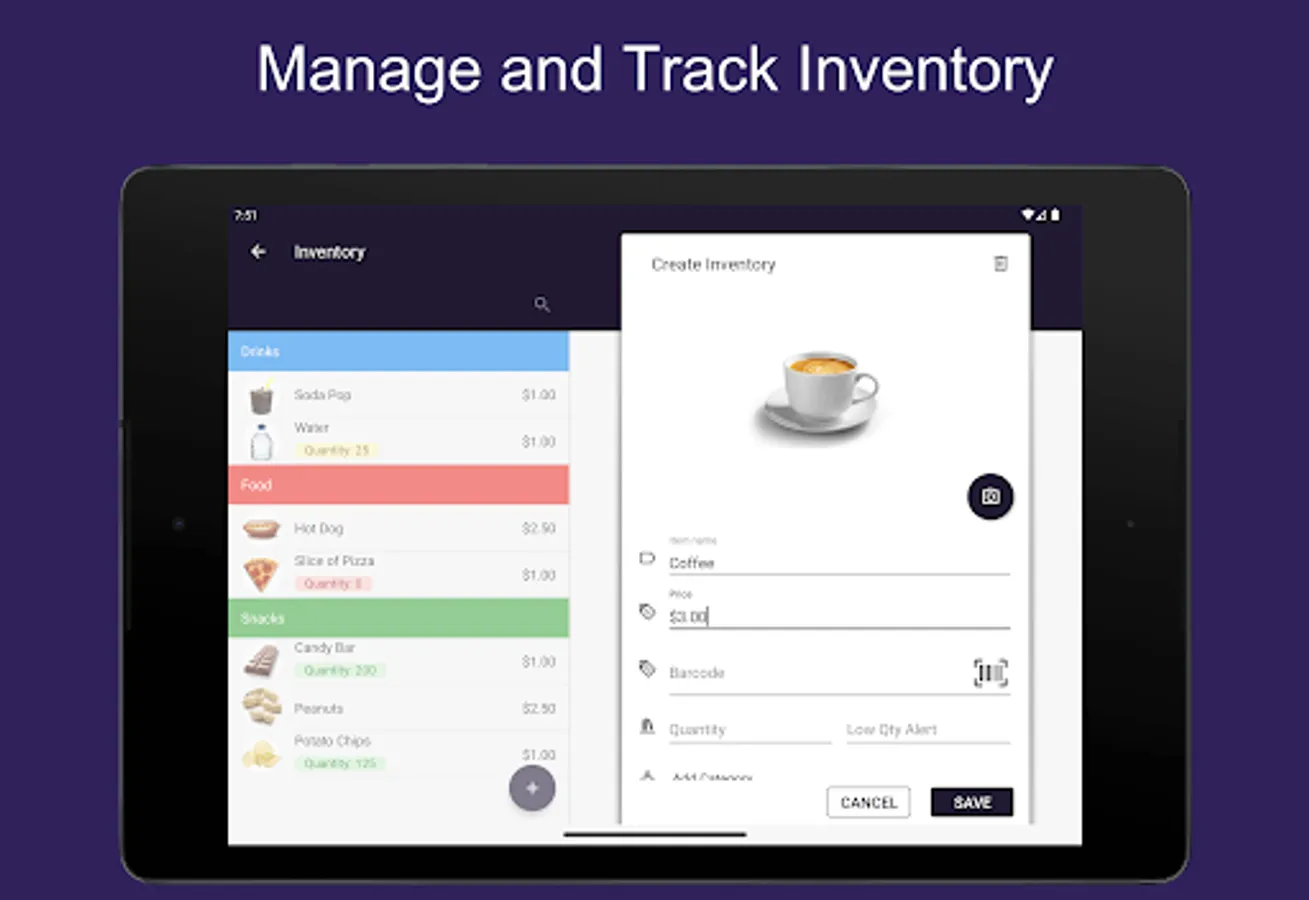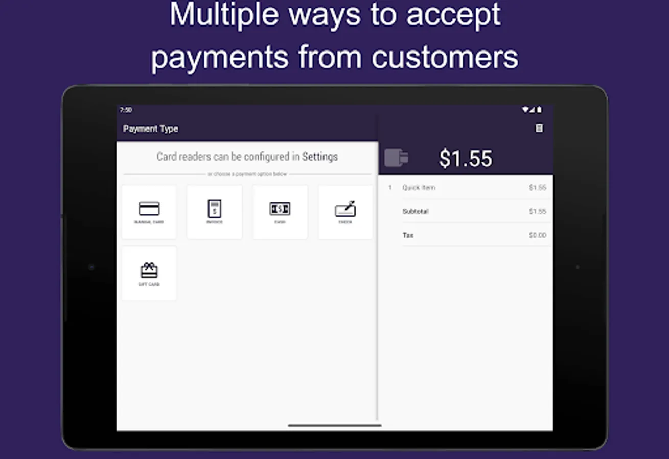 • Easy transaction management - Quickly add multiple items to a purchase, edit sales tax on the fly, and more