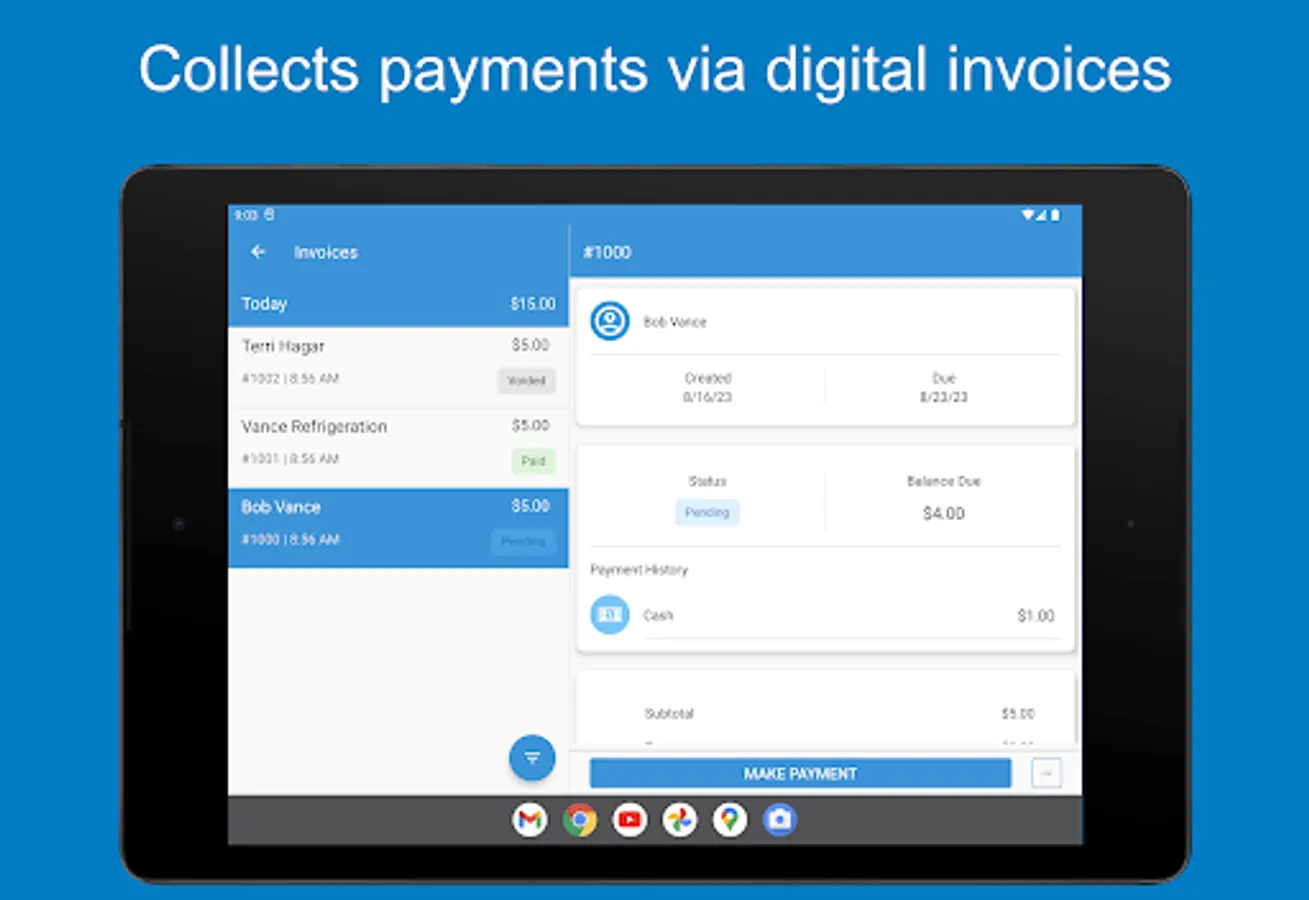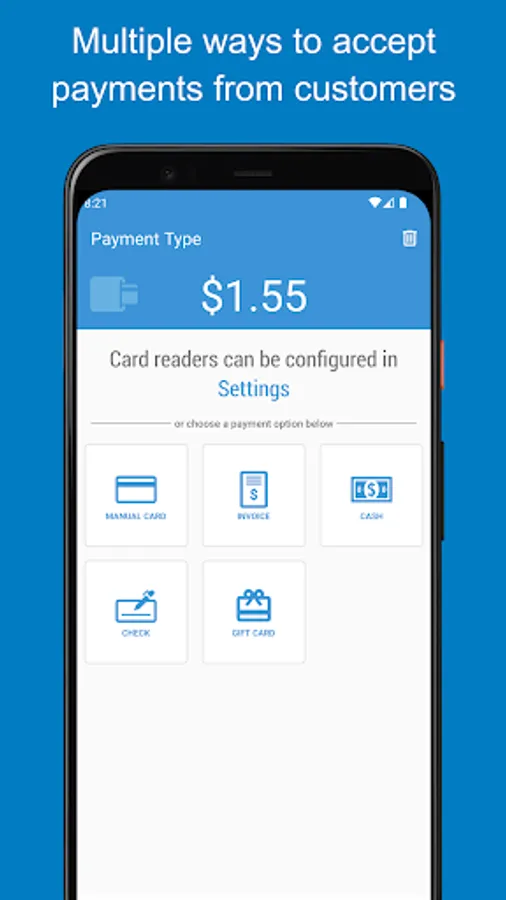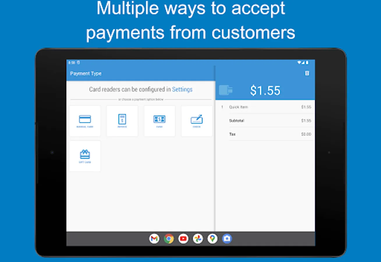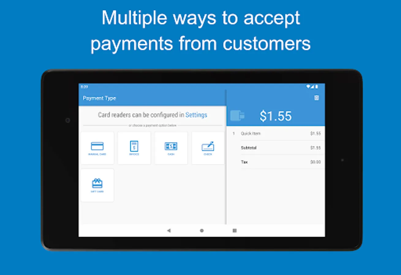 • Receipts – Easily send receipts to your customers via SMS or email