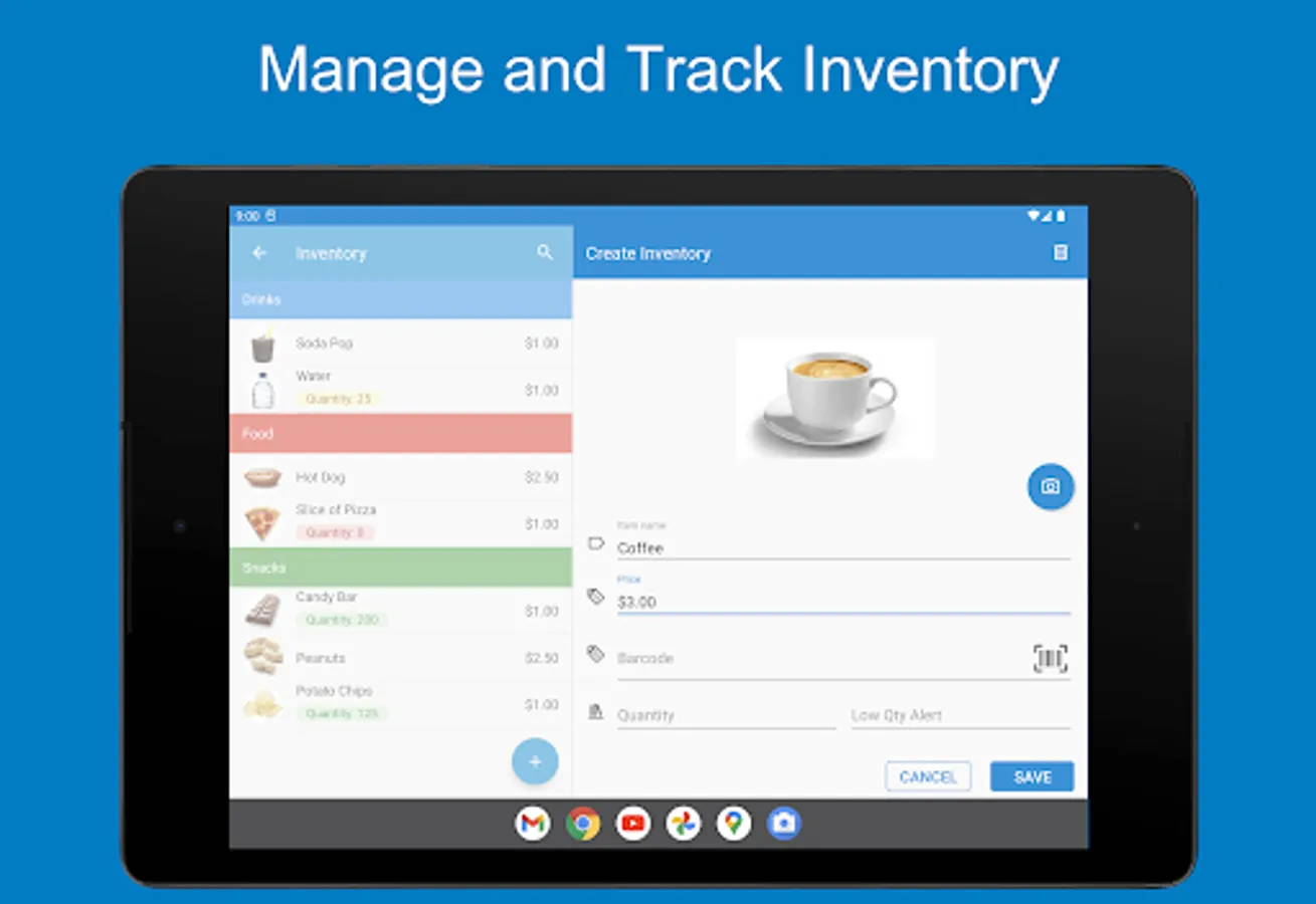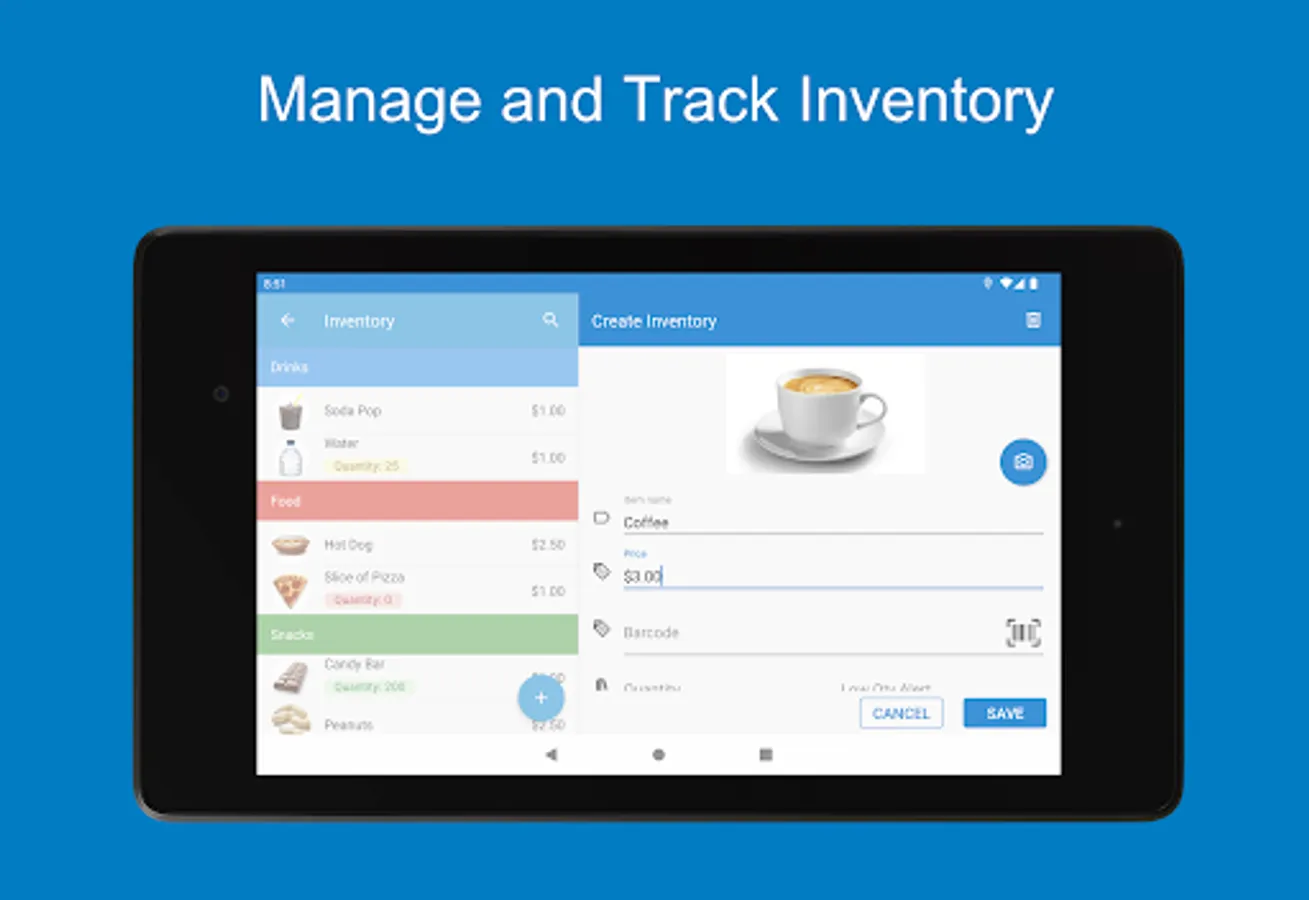 • Cloud-based Inventory and Reports – Create inventory lists and manage sales reports from any device