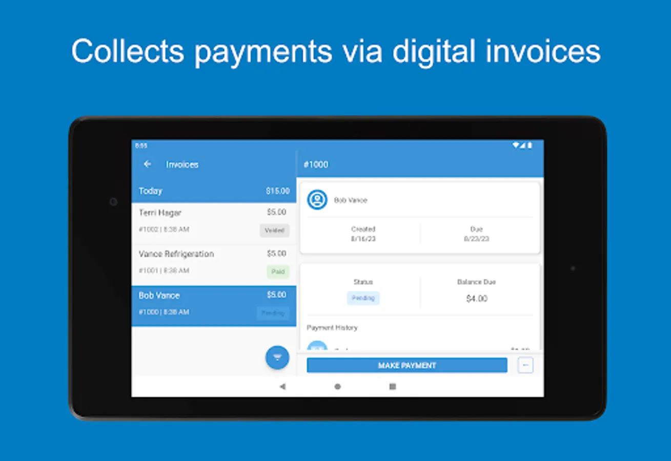 • Transaction History – View sales history and issue refunds from the same screen