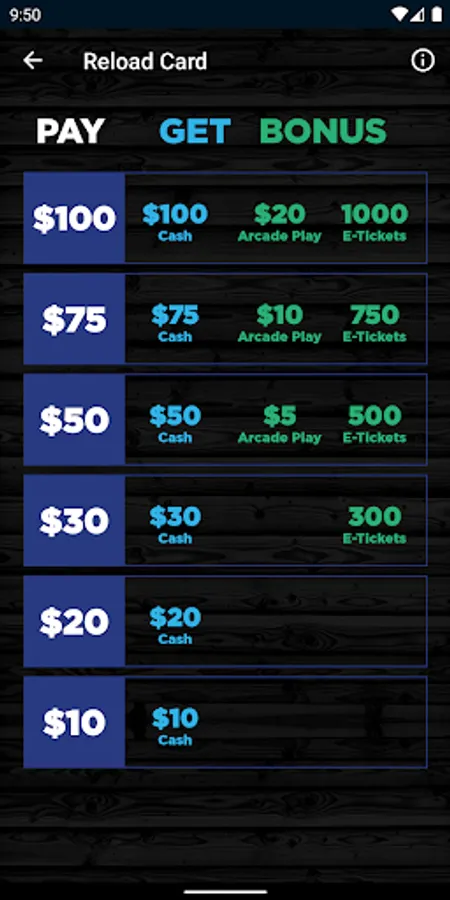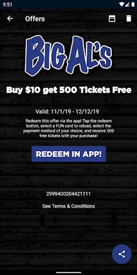 • Never wait for more FUN again – reload your Big Al’s FUN Card right from your phone