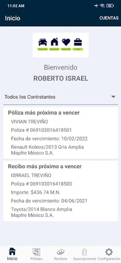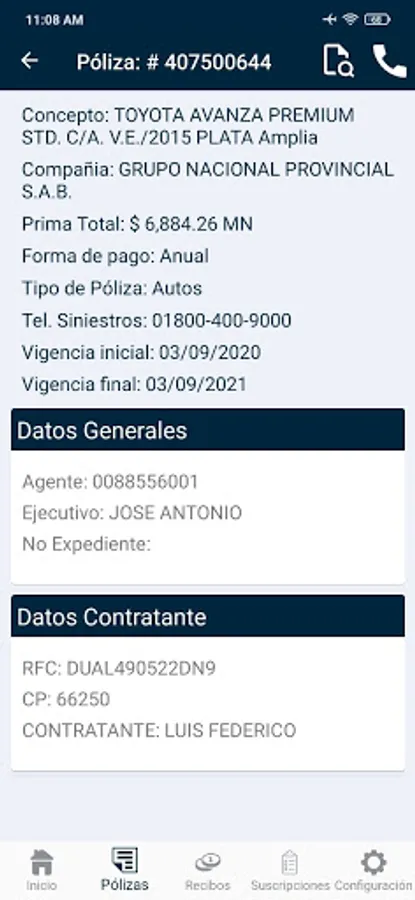 Connect with your agent and always carry the insurance policies with you on your mobile device, locate them quickly and forget about looking for them in the glove compartment of the car or in your personal file. Check your account statement and check the status of your payments and due dates.