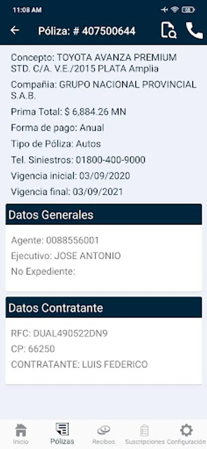 Connect with your agent and always carry insurance policies with you on your mobile device, locate them quickly and forget about looking for them in the glove compartment of the car or in your personal file. Check your account statement and review the status of your payments and due dates.