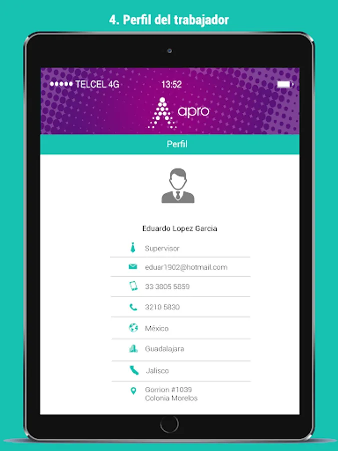 The official checador assists Apro, this will check the entry and exit of your employee.