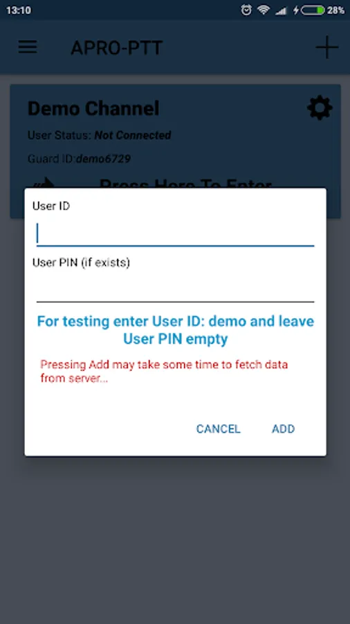 To try it for free enter "demo" as User ID and leave User PIN field empty.*