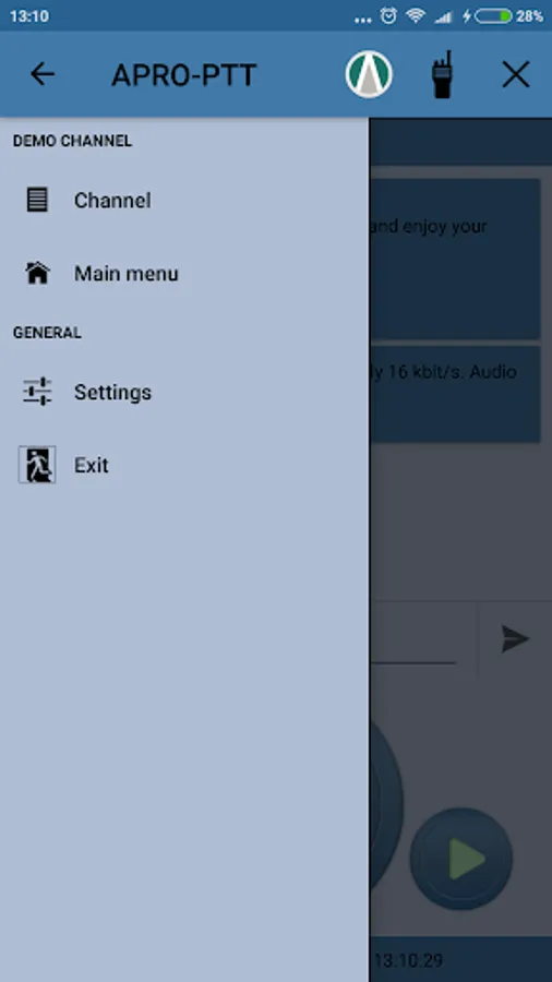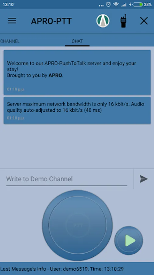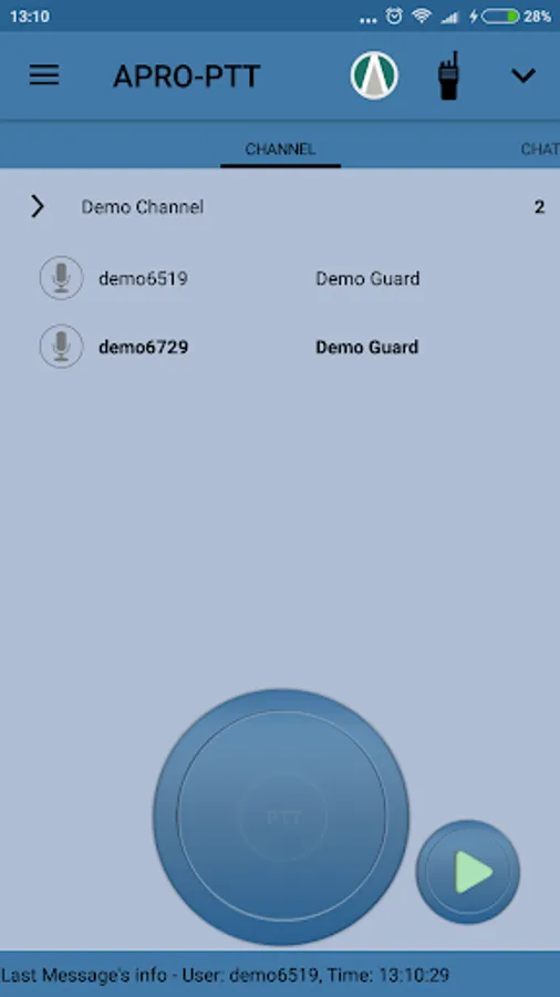 APRO-PTT is an easy to use ptt over IP client for lone workers communication. It can be used by companies that need to be in constant communication with their employees (Lone Workers), to give instructions, make comments, report incidents in real time by voice communication or by sending a text message within the app.
