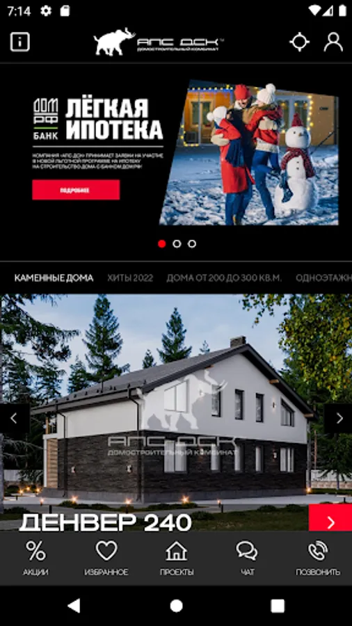 Our application is a simple and convenient tool for choosing and ordering the construction of a turnkey country house. Choose a house project made of stone, glued beams, watch its construction online from anywhere in the world, from any gadget!