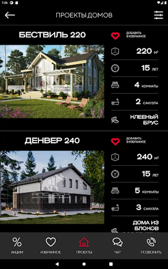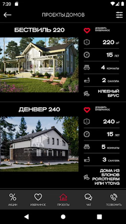 • A huge searchable catalog containing more than 15,000 house designs in various styles (classic, high-tech, Scandinavian and others);