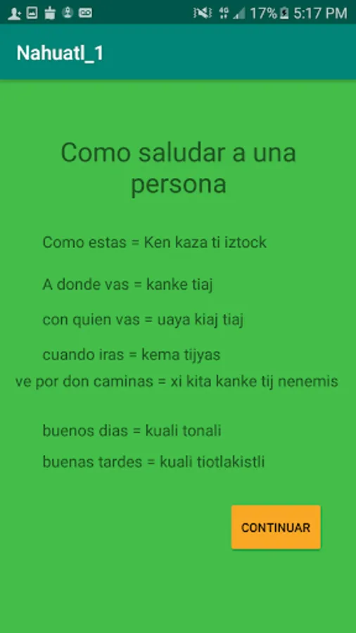 In this application you will learn the basics of the Nahuatl language