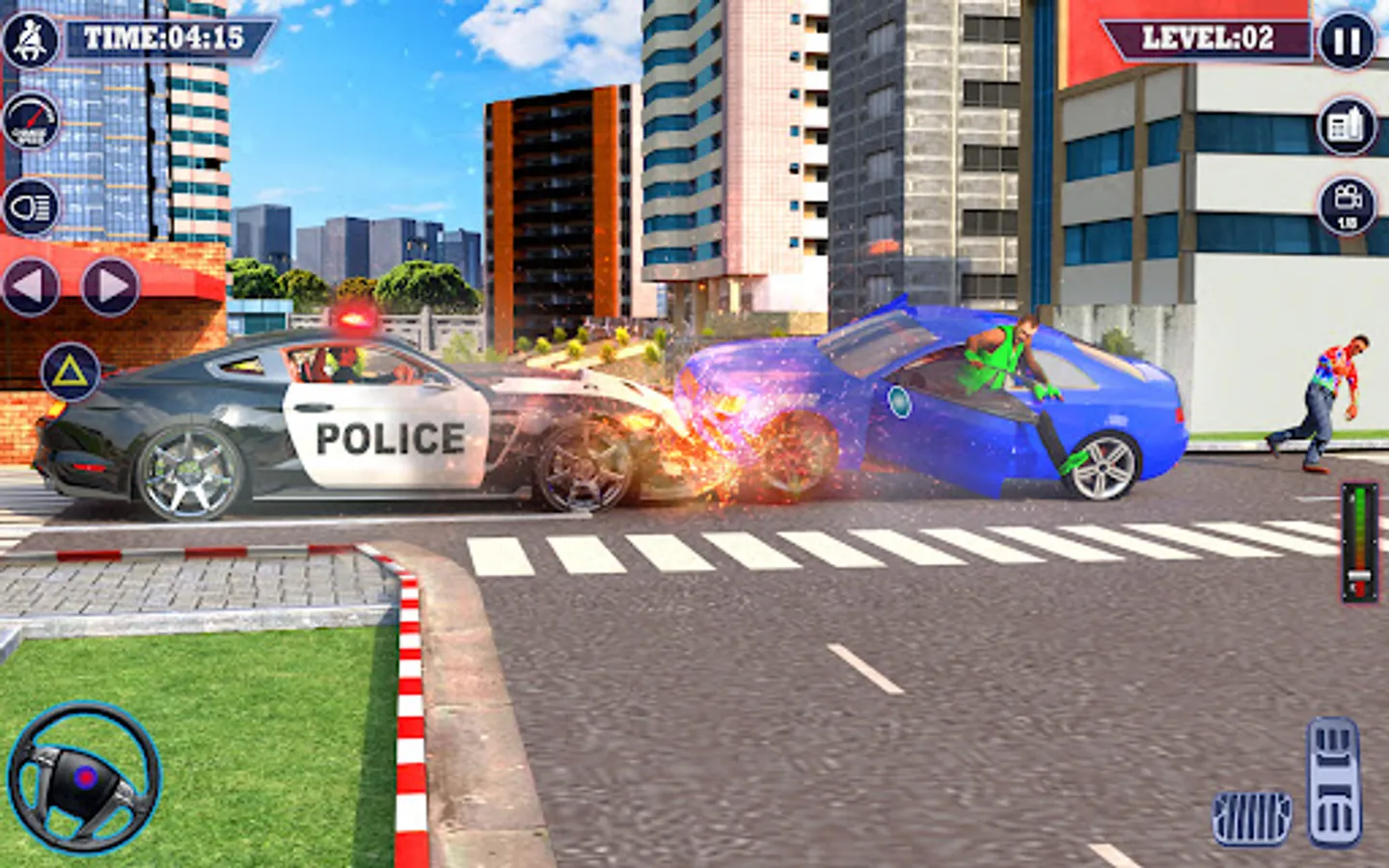 A well-trained police officer is on cop duty to control crimes in the city and save the lives of all citizens from gangsters, thieves, and bank robbers. To create more interest in the police wali game, lot of luxury police cars and jeeps available to unlock. Increase your police car speed by taking sharp turns following chase gangsters in police car games 3d. More speed up your police chasing car because robbers are already driving car at great speed. You will complete chasing car missions by shooting or arresting chasing criminals before gangsters escape to protect your city and bring peace to the city. You will learn how to destroy gangster missions in police wala game & car wali game. This game provides the best car control buttons like the steering wheel, brake, and race acceleration.
