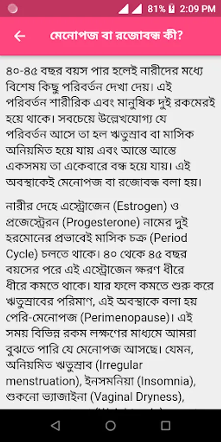 🔹 মেনোপজ বা রজোবন্ধ কী?