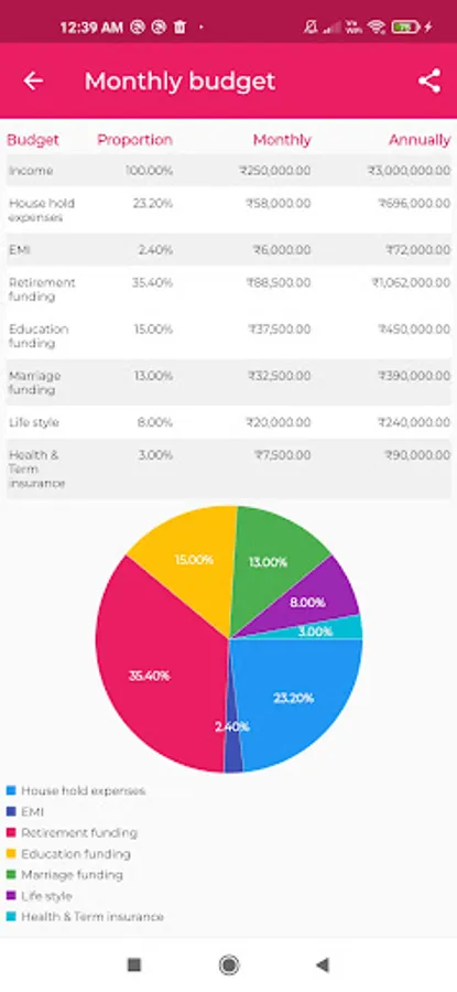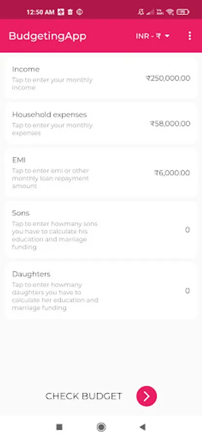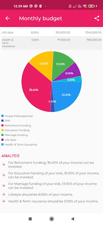 Budgeting app is developed for helping you to check your financial health before start investing for Education and Marriage funding for your kids and Retirement funding for your financial freedom.