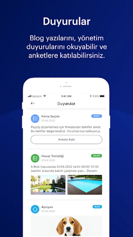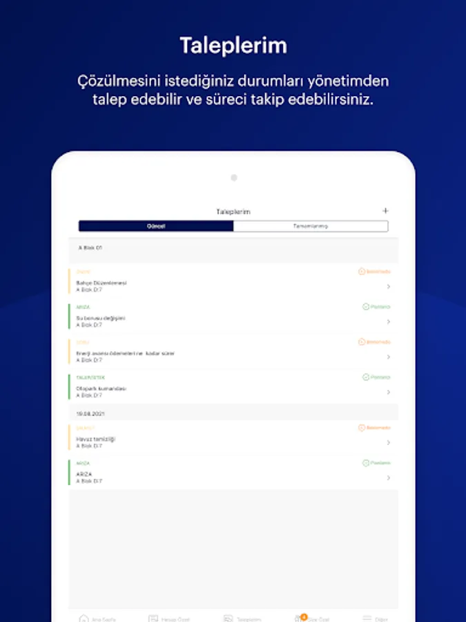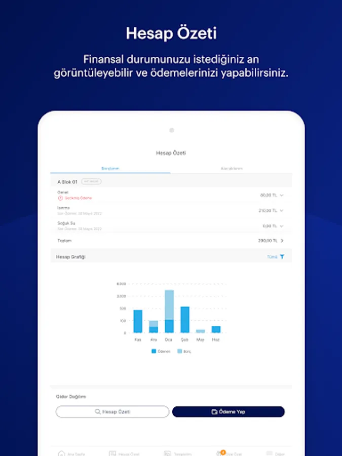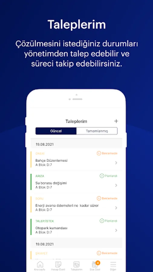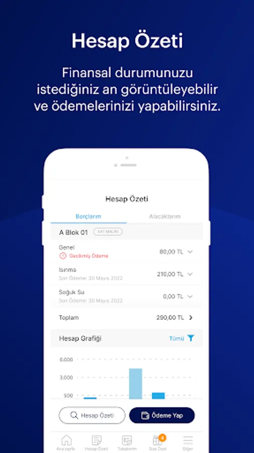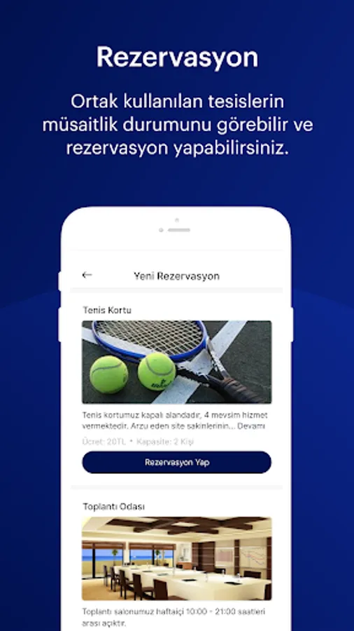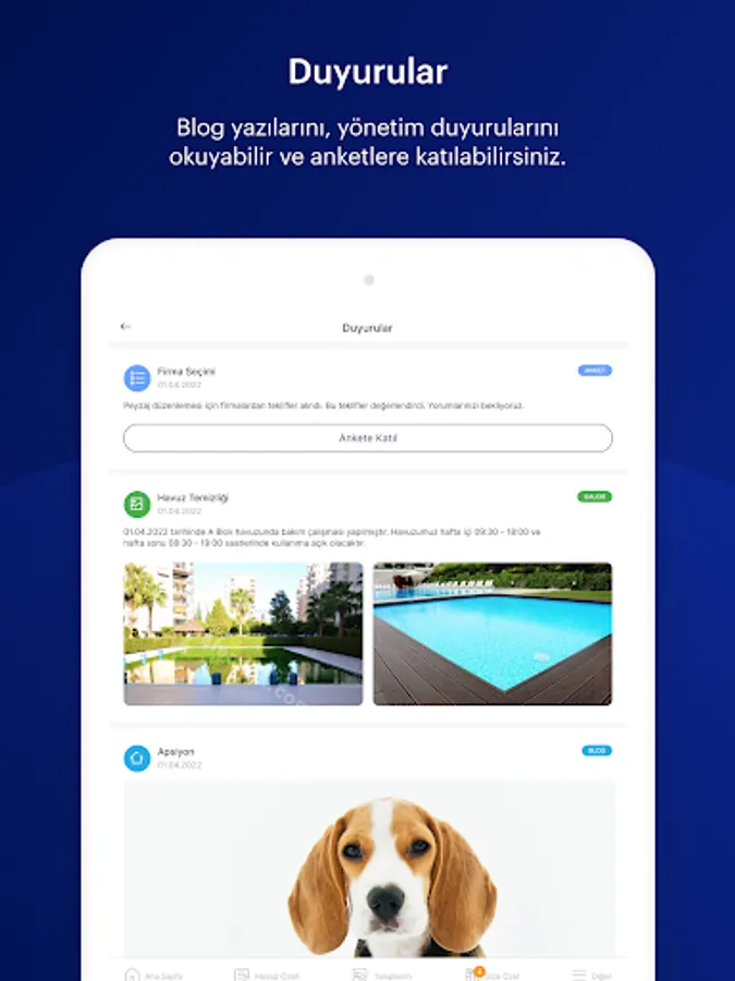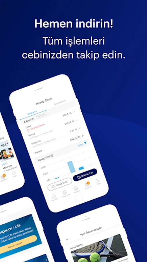 With the application, you can view your financial status at any time and pay online. You can also follow all developments related to your site closely and participate interactively to platforms such as announcements, announcements and surveys.