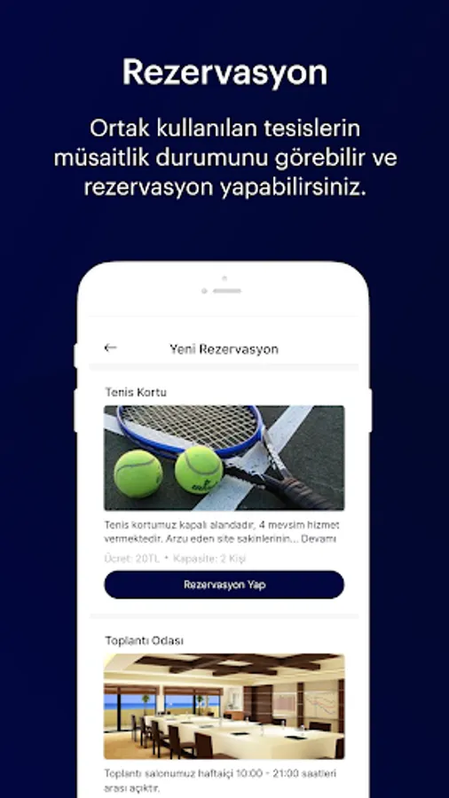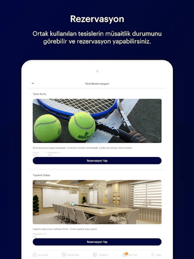 You can see the availability of common facilities such as tennis courts, pool, sauna and gym and make reservations.