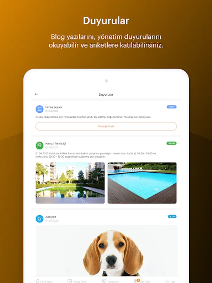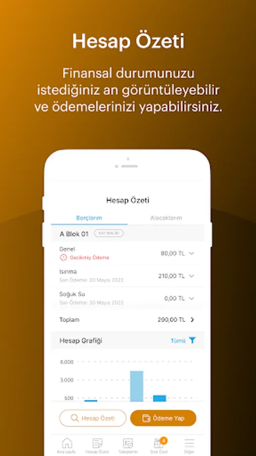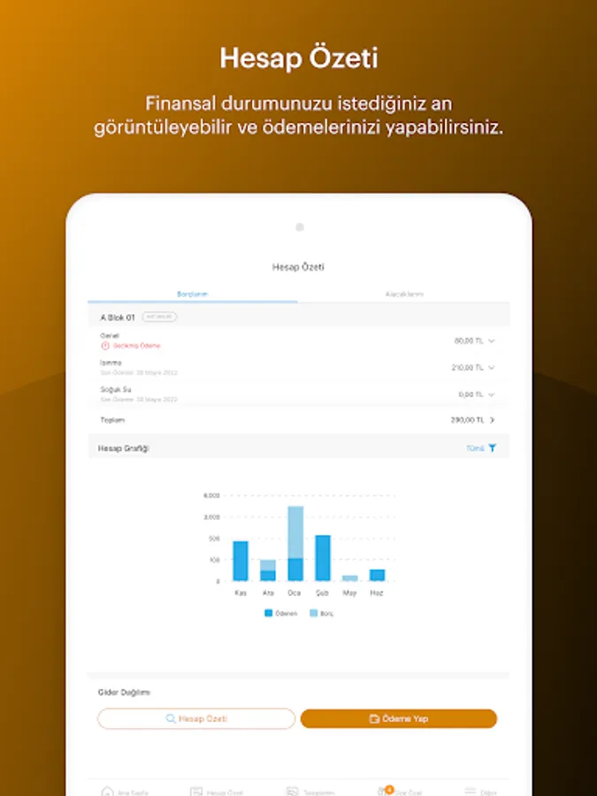 It offers solutions such as management or keeping financial and legal transactions online in collective living areas such as AVM, Residence, Site and Apartment. It is the biggest helper in the more practical and systematic management of living spaces. Thanks to the pos services integrated into the application, you will be able to perform your collection transactions with credit card as well as cash management and will help you to increase the collection ways.
