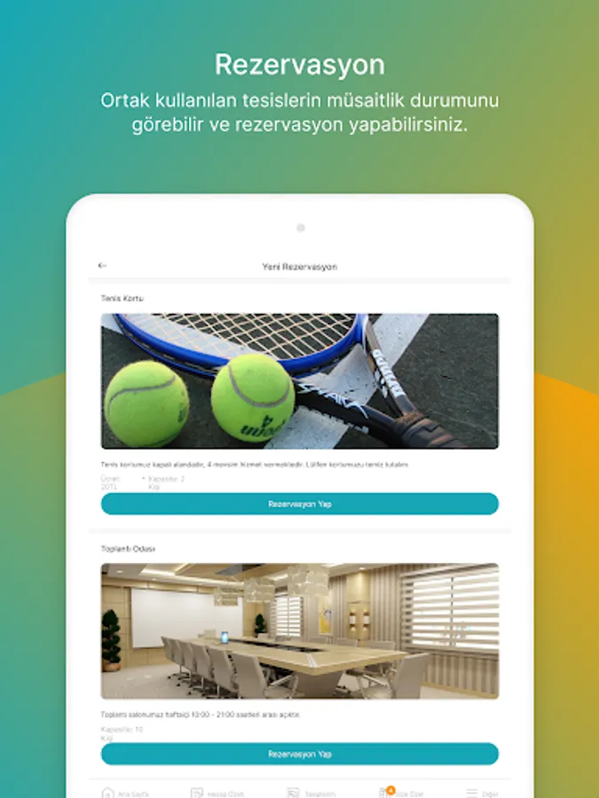 You can see the availability of common facilities such as tennis court, pool, sauna and gym and make reservations.