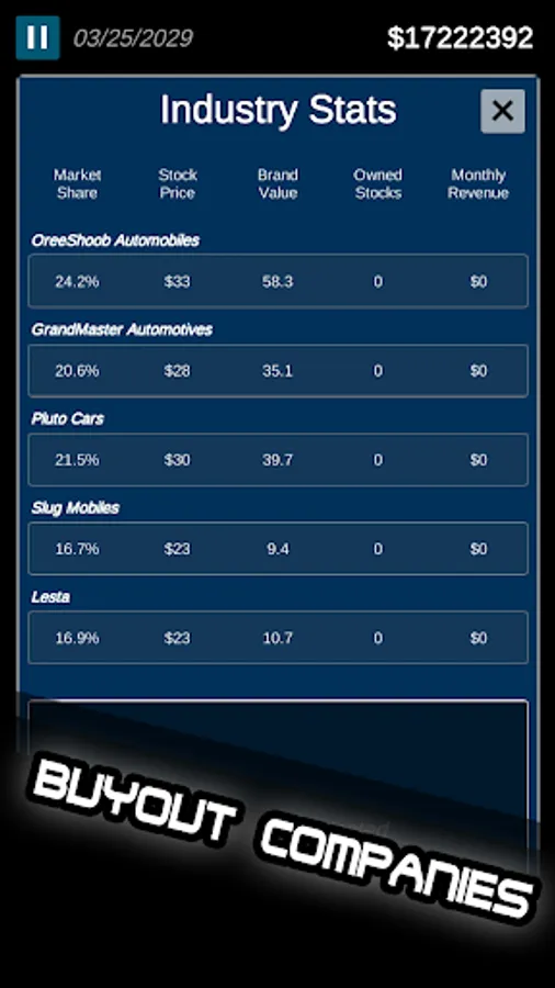 Buy stocks for businesses in various industries. Gain a controlling interest in one and dominate the industry. Make marketing decisions and become the owner of a multi-billion dollar company.